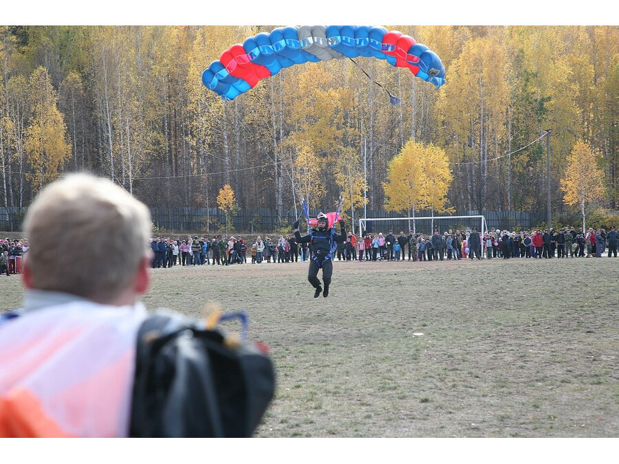 - Да, мы дважды использовали летающую технику на стадионных праздниках. В первый раз это был планер с полотнищем к юбилею машгородка. А второй раз, на Дне города (тогда нашими гостями были Михаил Шуфутинский и Татьяна Овсиенко), небольшой самолёт, с которого садились парашютисты на маленькую точку, нарисованную в середине стадиона. Волновались по поводу точности их посадки, но всё получилось.