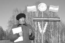 Нет, этому надо учиться! Чему? Умению наших соседей-башкир хранить и возрождать свою историю. Пидорожный камень, поставленный вертикально. Скошенный край, чуть оббита лицевая сторона. И неровной цепочкой цифры… 1, 9, 1, 4. Невысокий, мы бы его и не приметили, если бы не деревянная свежевыкрашенная загородка. Бок о бок плита с надписью: «Камень Сакрымташ установлен в 1914 г. С этого памятного места суюндуковцы провожали односельчан на первую мировую войну в 1914 г. и Великую Отечественную войну 1941-1945 годов». Тт вечер предзимья с опустевшим сквозным березняком загадал еще одну загадку о земле нашей. Загадал… и чуть-чуть приоткрыл ее тайну, как бы говоря: дальше сами познавайте. Суюндуковские встречи Вбрали все же время, заехали в село, что недалеко от той развилки дорог, от «именного камня». От Миасса до Суюндуково примерно столько же, сколько до Устиново. Но если бывшее казачье село как на ладони среди степного раздолья, то башкирская деревня спряталась промеж крутых горок. Да и проезжий путь на Кучуково мимо лежит. Всельской школе, поведав кое-что из истории деревни, направили к библиотекарю — Виле Жамиловне Мурзагуловой. А она уже повела нас к учительнице Баязитовой. Ее мы застали у ворот дома. — Сайма Габитовна, откуда такой необычный камень Сакрымташ? — «Сакрым» по-башкирски — это «верста», «километр». От него начинались все праздники, провожали на войну. — Но почему так, если это просто-напросто верстовой столб? — Вот раньше там были ворота, — с трудом подбирая русские слова, хочет донести что-то важное Сайма Габитовна, — там часто стояли мальчики. Дорога от Миасса на Учалы здесь была главная, проходила через Суюндуково. Здесь лошадью ходили, обозом ездили на базар в Миасс, в Учалы, в Уфу. Когда приезжали с базара, ребятишкам там давали гостинцы. — Так это что же — граница? Граница какого-то рода? — Да, да! — обрадованно кивает старая учительница. Башкирская земля в XVIII веке на дороги делилась. У нас была Сибирская дорога. Дороги в свою очередь подразделялись на волости. На границе волости ставили тамги — знаки родовой собственности. Башкиры до сих пор знают свой род! Не просто дедов и прадедов, а ту еще первоначальную родовую принадлежность. — Значит, Сакрымташ не столько верстовой камень — это тамга? — Вот я так знаю: от деревни это километр, верста. Оттуда начинались скачки на версту в нашу деревню. Здесь же ждали возвращающихся с войны. Кгда возвращаются… а кто-то и не возвращался. Сколько слез ты видел, Сакрымташ, за долгий век? Сколько молитв, причитаний звучало над тобой, гранитный камень? — От старого времени еще что-то в памяти интересное сохранилось? — Каратэкэ — гора около озера, — вступает в разговор Виля Жамиловна. — Деревня наша на красивом месте стоит, у озера Карабалык. Справа от него гора. В 1921 году была сильная засуха и голод. Один из богатых жителей деревни собрал народ и провел на горе обряд курбан-салыу. Зарезали там черного барана — кара тэкэ. Читали молитвы. А народ бросал со склона в воду взятые из озера камни. Бросали не просто, а чтобы брызги летели и с пожеланием дождя. От этого и осталось название. Унас что еще интересно? Здесь много русских названий — поляны, горы. Гора Семен, и родник тоже. Был хутор Иванович, Иваняш по-башкирски. Теперь горы так именуют. — А почему много русских названий? — Тут золото открыли в начале 